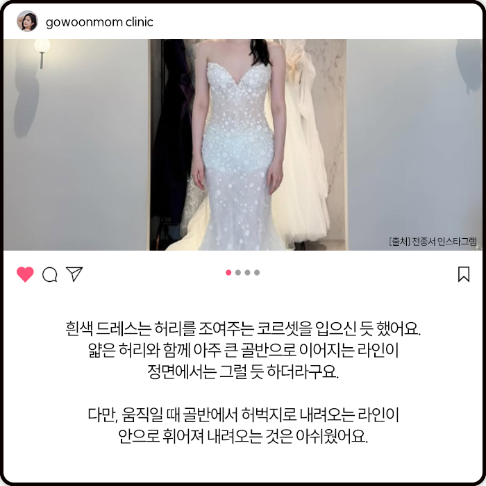 흰색드레스 입을 때는 허리를 조여주는 코르셋을 입어주신 듯 했어요.