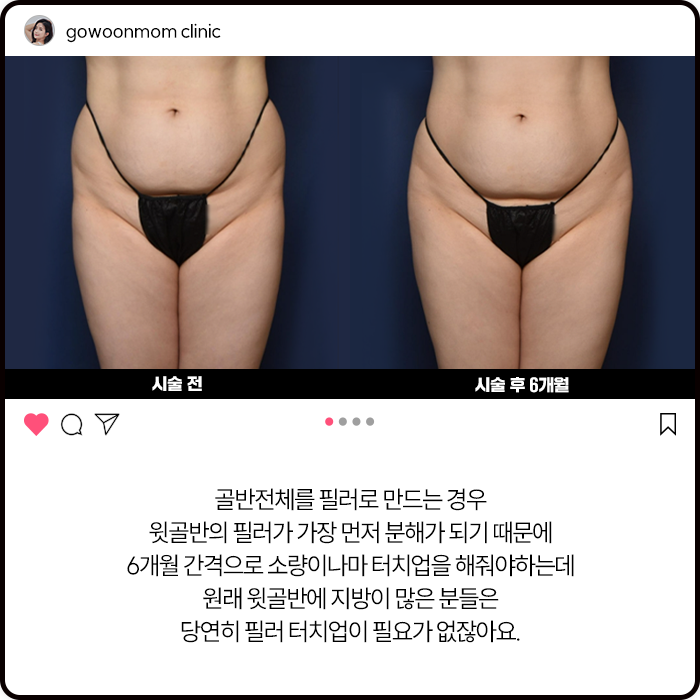 원래 윗골반에 지방이 많은 분들은 당연히 필러터치업이 필요가 없잖아요.